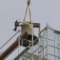 Bildrechte Thomas Pesth Am Dienstag, dem 29. März, war es nun soweit. Die alten Glocken wurden hinaus-, und die neuen Glocken hineingehoben, und es wurden zwei Stahlträger zur Unterstützung des Glockenstuhls an der Nordseite des Turm eingeschoben.